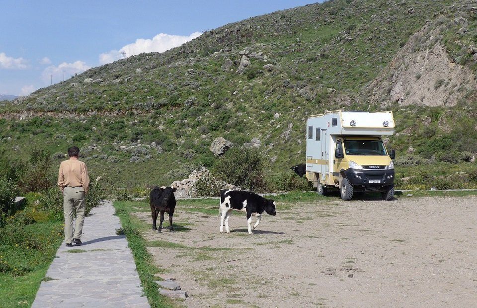 Hoch erfreut, dass es mit dem Wetter und den Kondoren so gut geklappt hat, machen wir uns auf den Rückweg, diesmal über die asphaltierten Hauptstrassen, auch wenn das kilometermässig einen beträchtlichen Umweg bedeutet. Wir schaffen es wieder bis zum Stellplatz am Fluss, wo wir vor drei Tagen übernachtet haben und sinken müde ins Bett. Um 23 Uhr höre ich ein Auto, das neben unserem Wohnmobil anhält. Dann klopft es an die Tür. Ich wecke Heinz, er schaltet die Aussenbeleuchtung ein und sieht, dass zwei Polizisten vor der Tür stehen. Sie sind da, um uns zu warnen. Es sei gefährlich hier, es habe schon Überfälle gegeben und wir sollen vorsichtig sein. Wenn jemand komme, sollen wir auf keinen Fall die Tür oder ein Fenster öffnen. Dann wünschen sie eine gute Nacht, was unter diesen Umständen gerade ein bisschen schwierig ist. Die Tatsache jedoch, dass wir uns quasi in einer «Hochburg» befinden, die nicht so einfach zu knacken ist, lässt uns dann doch weiterschlafen.