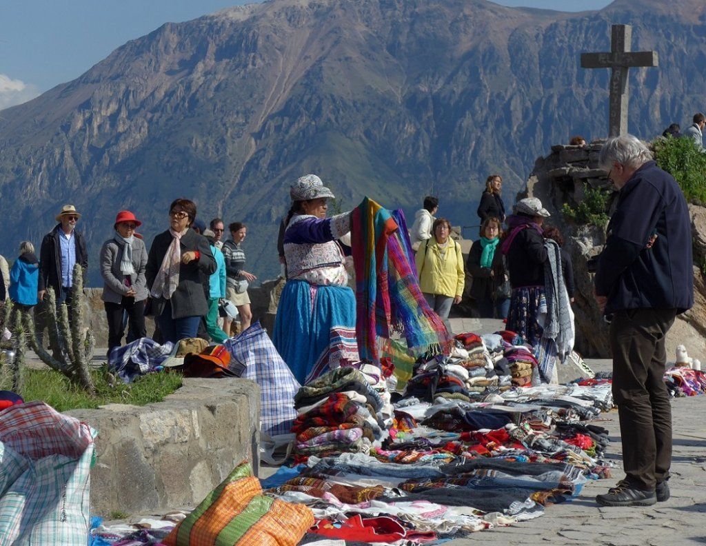 Als die ersten Touristenbusse eine Stunde später eintreffen, ist die Vorstellung schon fast gelaufen. Immerhin sind noch ein paar Kondore da und im Übrigen hat man reichlich Gelegenheit, seine Souvenirsammlung zu erweitern. Überall, wo Touristen hinkommen, bei jedem Aussichtspunkt und jedem Parkplatz breiten Einheimische ihre Waren zum Verkauf aus.