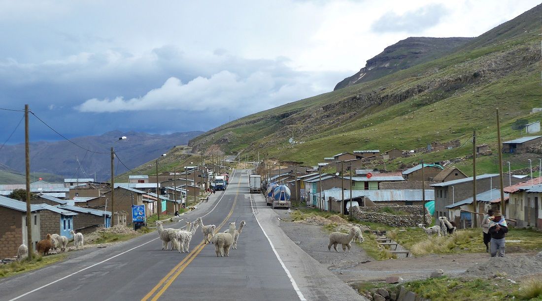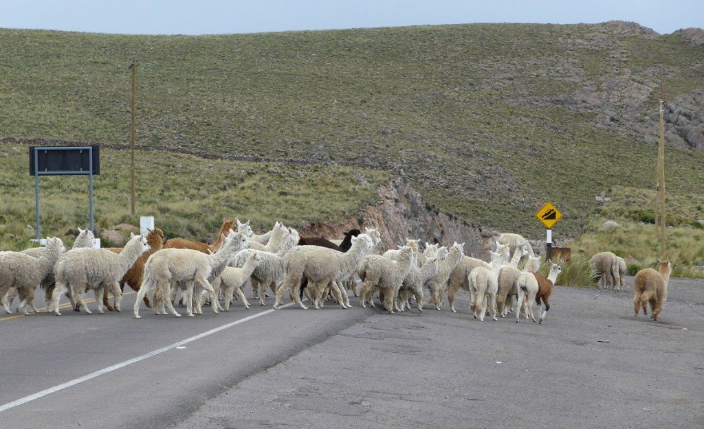 Der Abstecher nimmt dann drei Tage in Anspruch. Zuerst führt eine gute Strasse über einen 4413m hohen Pass, was wir sehr geniessen. Dann kommen wir zu einem Dorf, von wo aus wir den direkten Weg wählen, obschon er nicht asphaltiert ist. Man sagt uns, das sei kein Problem, die Strassen seien ‘plano’. Im Nachhinein nehmen wir uns vor, nie mehr irgendwen nach dem Strassenzustand zu fragen! Zum Teil sind die Strassen in einem fürchterlichen Zustand, sodass wir mit einer Durchschnittsgeschwindigkeit von gerade mal 10 - 15 km/h vorankommen. Auch glänzen die Wegweiser oft durch Abwesenheit und das Navi findet sich generell in Peru nur begrenzt zurecht. So endet eine der miesen Pisten an einem See, eine andere an einem abgeschlossenen Tor. Die Landschaft hingegen ist wie gewohnt faszinierend, bereichert durch viele Lamas und Vicuñas.