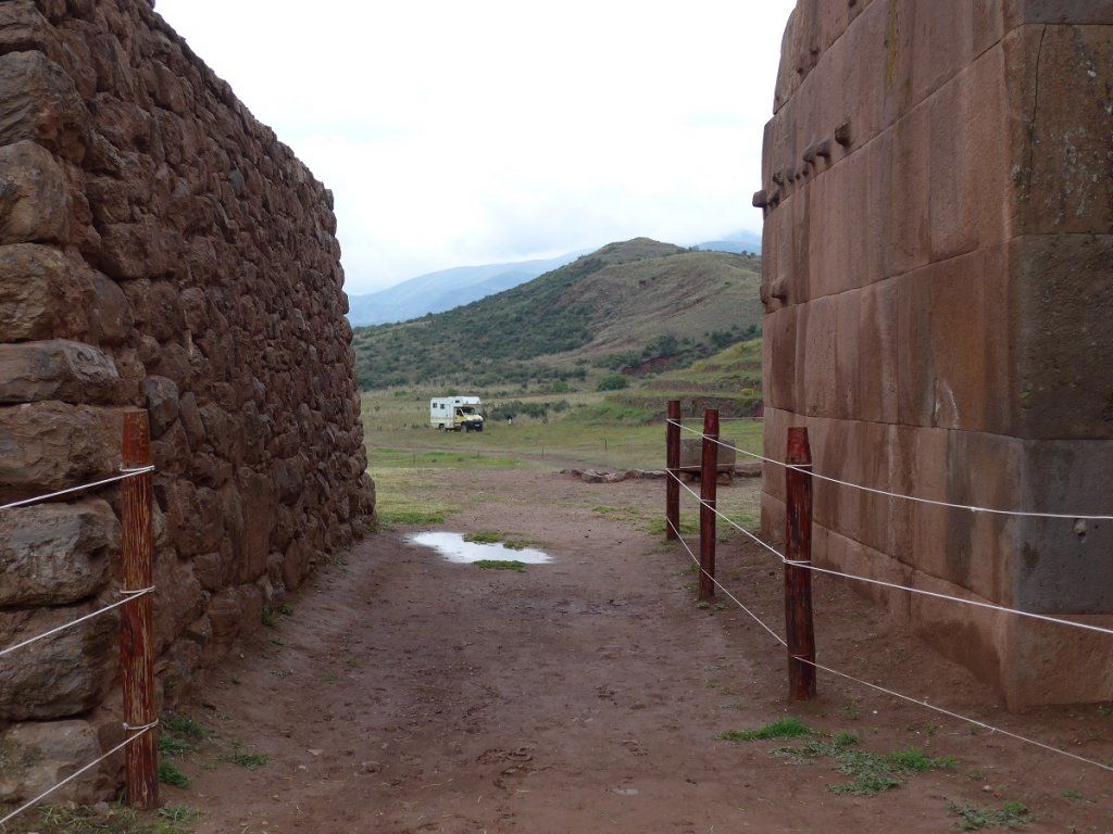 Das nächste Ziel heisst Cusco, das wir nach einer zweitägigen Fahrt über den Altiplano erreichen. Cusco war einst Hauptstadt des Inka-Imperiums (ab ca. 1200 bis zum Einfall der Spanier 1533). Die Inka beherrschten unter anderem die Kunst der fugenlosen Verblockung riesiger Steine. Die Steinblöcke sind bis zu einem Meter gross und so perfekt behauen und passgenau zusammengefügt, dass sie keinen Mörtel brauchen. Es ist bis heute ungeklärt, wie die gewaltigen Steinblöcke ohne Rad und Zugtiere transportiert und ohne Metallwerkzeuge bearbeitet wurden. Die spanischen Eroberer wollten alle Inka-Bauten in Cusco dem Erdboden gleich machen, doch die mächtigen Mauern liessen sich nicht so einfach einebnen. So dienen bis heute viele als Grundmauern für Kirchen und Kolonialgebäude und haben sich als absolut erdbebensicher bewährt! Schon vor der Einfahrt nach Cusco sehen wir ein erstes Beispiel dieser Baukunst im «Tor zu Cusco».