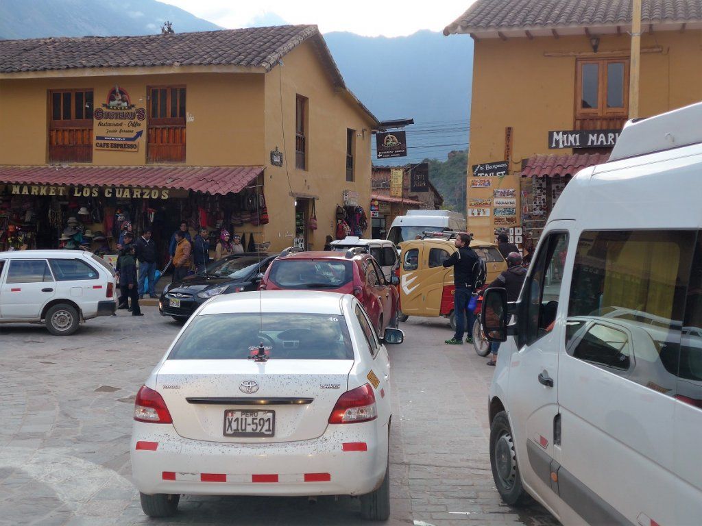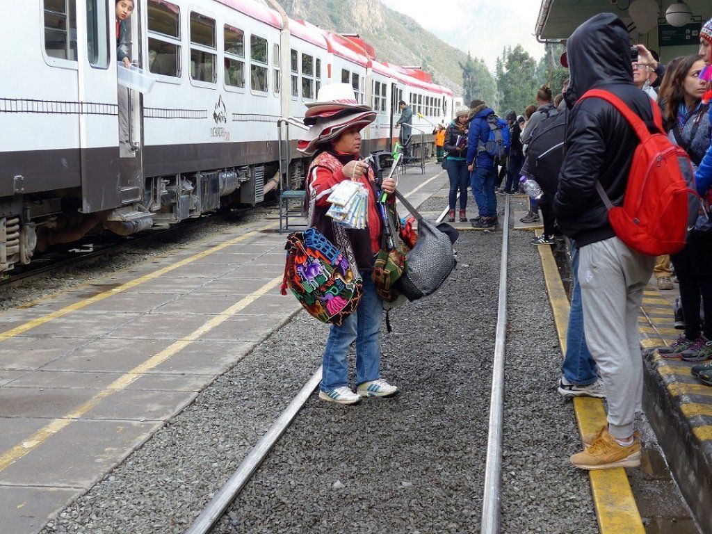 Durch das heilige Urubambatal fahren wir also zum kleinen Dorf Ollantaytambo. Hier beginnt bereits das Touristenchaos. Aufgrund der horrenden Bahnpreise nutzen unzählige Minibusfahrer ihre Chance, Besucher ab Cusco bis hierher zu bringen. Das Dorf ist total verstopft, die Strassen sind eng und nicht für einen solchen Ansturm ausgelegt. Wir müssen die Rückspiegel einklappen, damit ein Kreuzen mit Bussen und Cars überhaupt möglich ist. Zum Glück verfügt die Bahngesellschaft über einen grossen Parkplatz, der nebst vielen Bussen auch ein Plätzchen für einen Schweizer Camper frei hat. Dort übernachten wir und nehmen am Morgen den ersten möglichen Zug nach Aguas Calientes, in dem für uns Plätze reserviert sind.