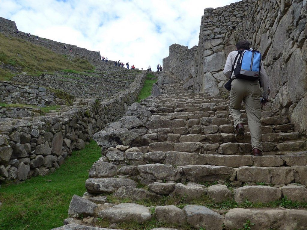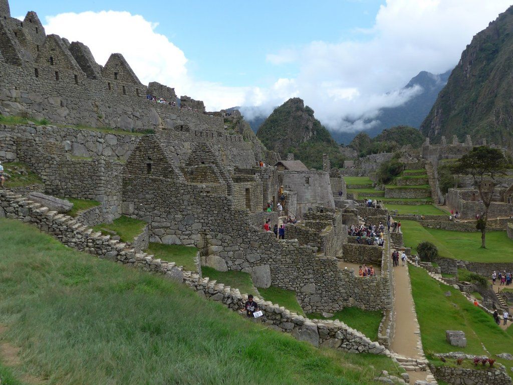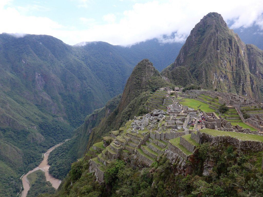 Machu Picchu wurde in der Anfangszeit der Inka gegründet und vor gut 100 Jahren von einem US-Amerikaner entdeckt. Bis heute ist wenig über die Ruinenstadt auf 2400m Höhe bekannt. Der an drei Seiten von schroffen und steilen Felsen umgebene Ort war genial gewählt für eine Schutzburg und Festung. Unklar ist jedoch, gegen wen sich die Inka hier verteidigen sollten. Die gesamte Stadtanlage ist von terrassierten Hängen umgeben, die in unbezwingbare, fast senkrecht abfallende Felsformationen übergehen. Es ist unvorstellbar, wie die unzähligen, tonnenschweren Steinquader in diesem steilen Gelände in die Höhe transportiert und bearbeitet werden konnten.
