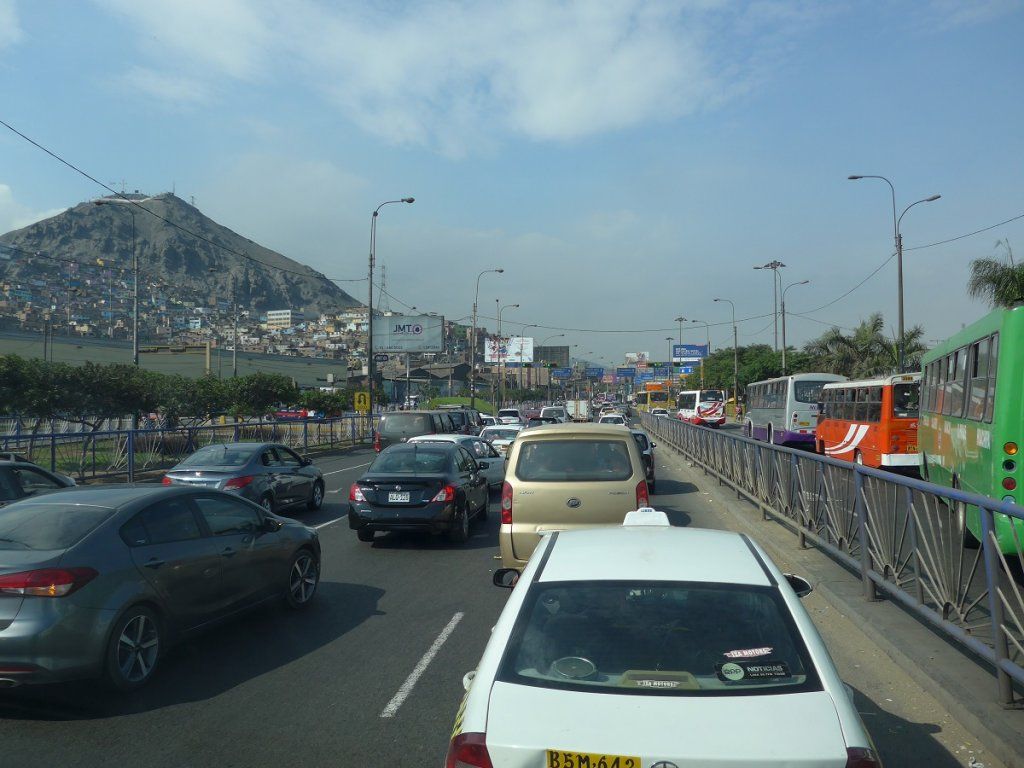 Du meine Güte! Wie kann man nur in so einer Stadt leben oder arbeiten, sich täglich durch den Verkehr hupen, links und rechts überholt werden, ständig mit anderen Autos auf Tuchfühlung fahren, jeden Vortritt, jedes Einspuren erkämpfen! Heinz mit seinen bald 20'000 km Südamerika-Erfahrung kurvt unterdessen wie ein Einheimischer herum und ich halte mich krampfhaft fest!
