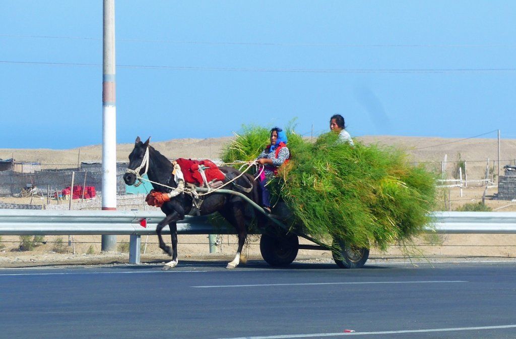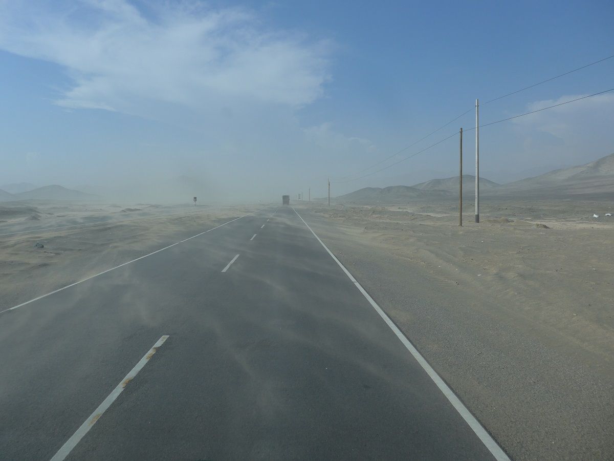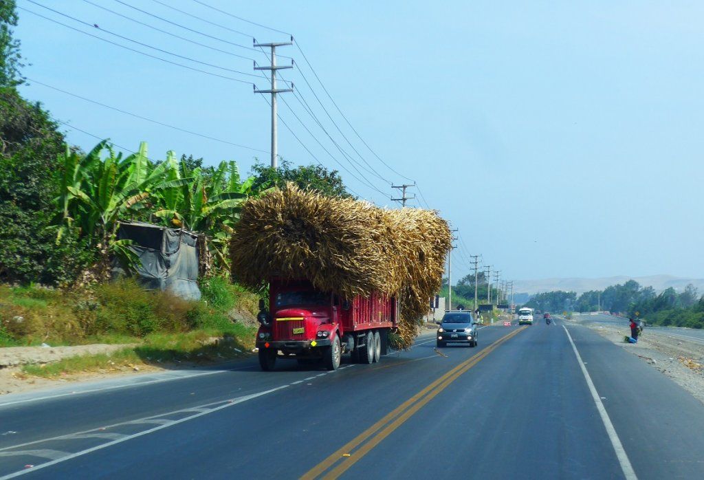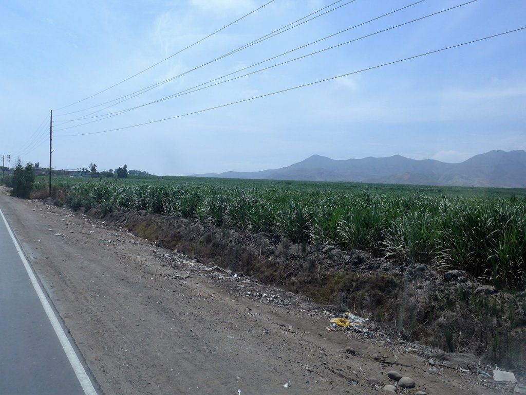 Wir sind immer ein bisschen auf der Flucht vor der Hitze. In Chile war die Pazifikküste mit der angenehmen Meerbrise unser Zufluchtsort, hier funktioniert das nicht mehr. Die Küste Perus ist feucht-heiss, die Nächte kühlen kaum ab und der berühmte Küstennebel am Morgen macht alles noch unangenehmer. Kommt hinzu, dass die Fahrt über lange Strecken durch eine graue Wüste führt, die als Abfalldeponie der Nation herhalten muss. Manchmal ziehen aber auch riesige Zuckerrohrplantagen an uns vorbei sowie Mais- und Getreidefelder, in denen ein Heer von Arbeitern von Hand die Feldarbeit verrichtet.