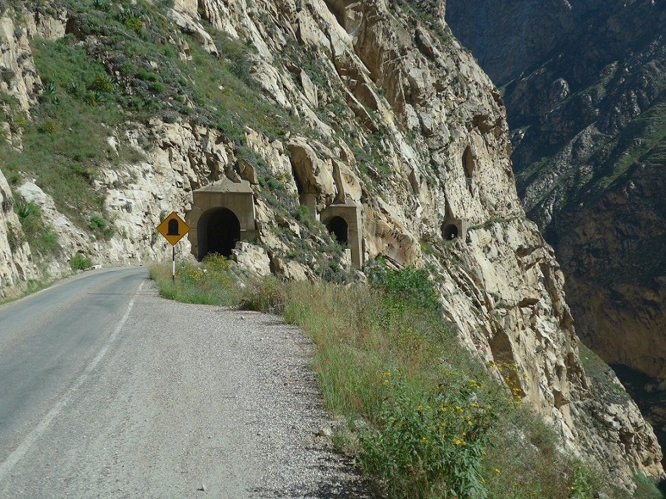 Da es in den Bergen keine vernünftige asphaltierte Verbindung nordwestwärts gibt, kommen wir nicht darum herum, wieder ins Backofenklima an der Küste abzusteigen. Der Weg führt durch den Cañon del Pato (die Entenschlucht), den der Rio Santo gegraben hat, und ist schlichtweg spektakulär. Durch 47 Tunnels folgt die einspurige Strasse einem einstigen Bahntrassee. Die meisten Tunnels sind kurz, einige aber ein paar hundert Meter lang. Man muss einfach hupen, wenn man schon im Tunnel ist, oder vor dem Eingang warten, bis der hupende Entgegenkommende vorbeigefahren ist. Das Gleiche für die zahlreichen Kurven. Nur wenn Busse entgegenkommen, wird es etwas schwieriger, weil die nicht gerne warten und nicht gerne Platz machen. Dummerweise ist der steile Abgrund immer auf der Beifahrerseite und Leitplanken hat es keine. Aber ich habe bekanntlich einen zuverlässigen Chauffeur, der auch kein Interesse hat, irgendwo in einer Schlucht zu landen!