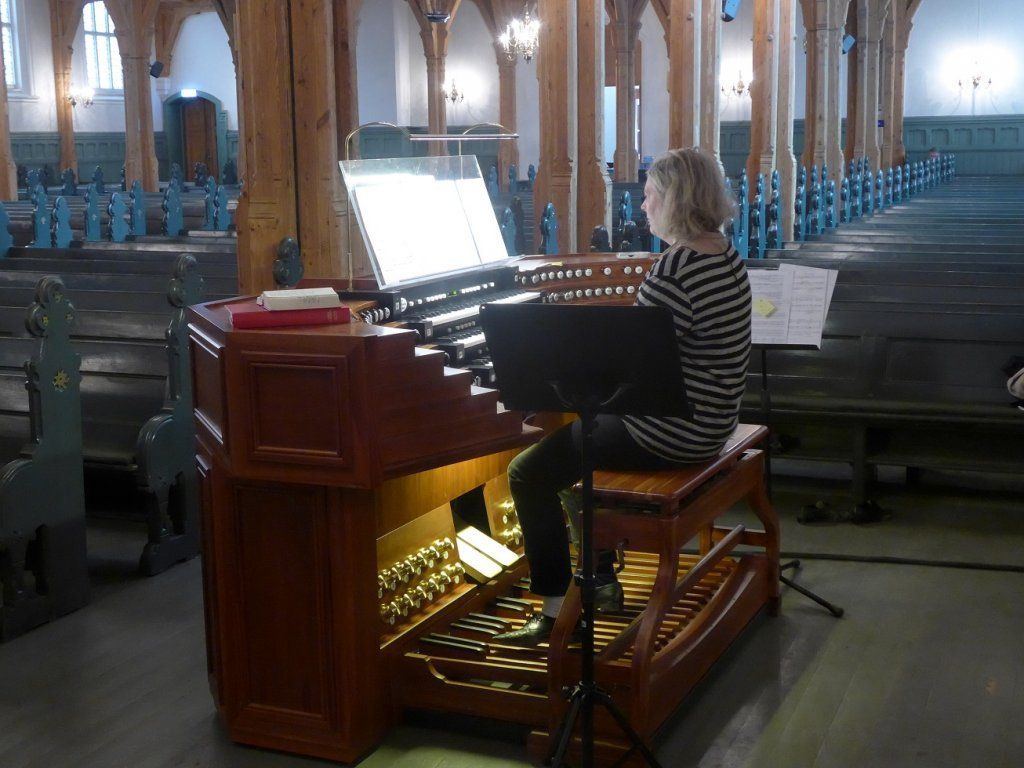 Die Telemarkstrasse endet am Meer bei Kristiansand. Auf einem ruhigen Plätzchen ausserhalb der Stadt verbringen wir die Nacht und fahren am nächsten Morgen mit dem Bus ins Zentrum. Im Dom ist eine Organistin am Üben für ein Konzert, das morgen den Passagieren eines Kreuzfahrtschiffes bei ihrem Landausflug geboten wird. Wir hören und schauen ihr gerne zu.