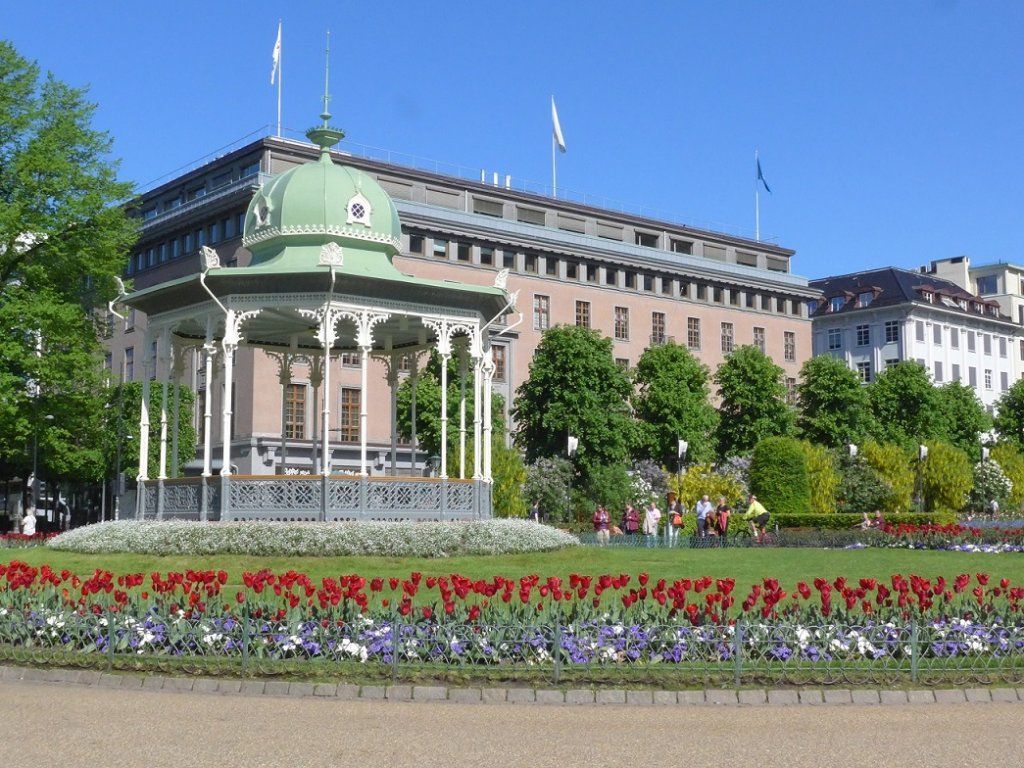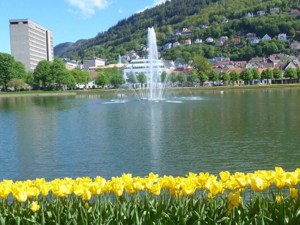 In einem Vorort von Bergen quartieren wir uns für zwei Nächte auf einem Campingplatz mit Waschmaschine und Bahnanschluss ins Stadtzentrum ein. Es herrschen sommerliche Temperaturen, in den schön angelegten Parks der Stadt Bergen blüht es in allen Farben. Wir werden reichlich dafür entschädigt, dass wir die Blüte unserer Rhododendren zu Hause verpassen.