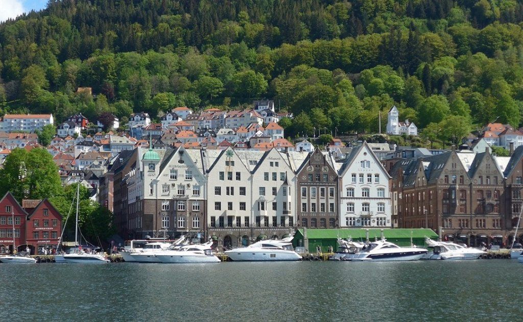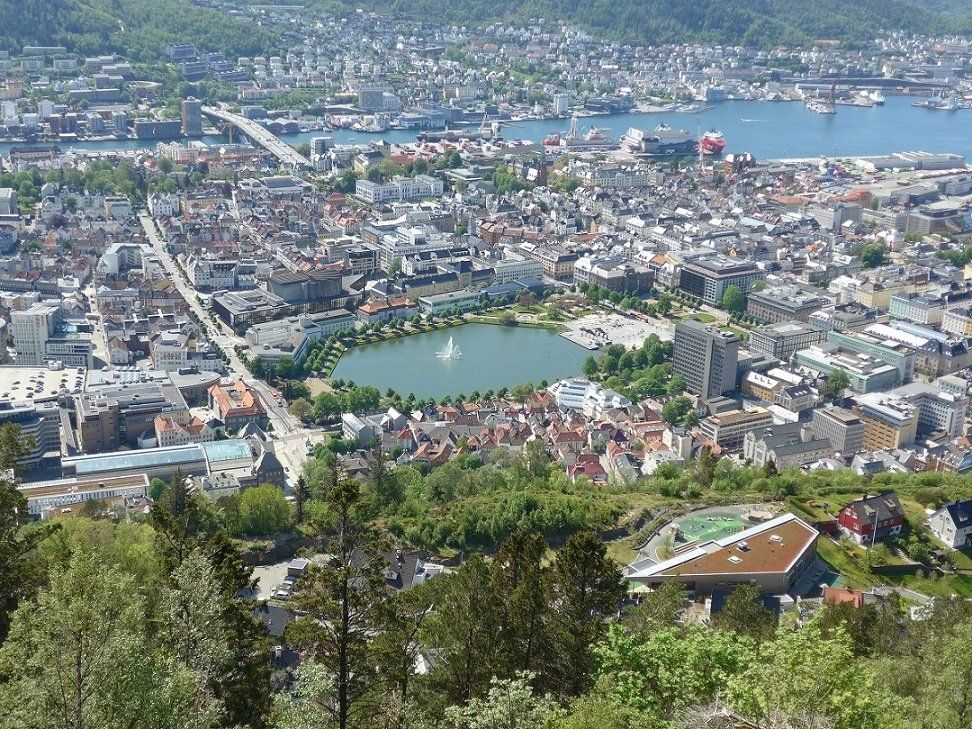 Bergen ist die zweitgrösste Stadt Norwegens und zählt rund 280'000 Einwohner. Sie ist eingebettet zwischen sieben Bergen. Als einer der Hauptsitze der Hanse war Bergen mehrere Jahrhunderte lang Zentrum des florierenden Handels zwischen Norwegen und dem Rest der Welt. Zeugen dieser Zeit sind die farbigen Holzhäuser entlang des Hafenbeckens Bryggen. Nach mehreren Stadtbränden, u.a. im Jahr 1702, wurde Bryggen im alten Baumuster des 12. Jahrhunderts aufgebaut und gehört zum UNESCO-Weltkulturerbe (siehe Titelbild).