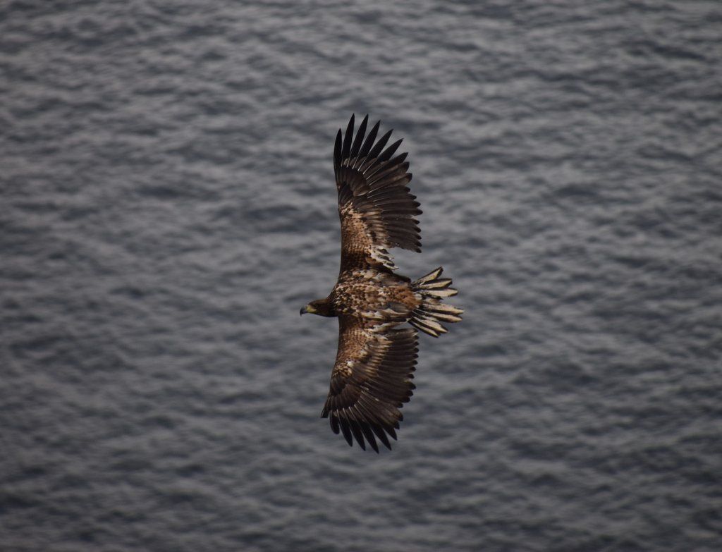 Vorerst steigen wir also wieder ab, verpflegen uns und nehmen am Abend den direkten, dreiviertelstündigen Weg auf die Klippe, von wo das Schauspiel am besten beobachtet werden kann. Von oben sehen die putzigen kleinen Vögel mit dem Papageienschnabel aus wie Schwalben. Leider ist der Himmel bedeckt und somit die Beleuchtung nicht optimal, aber es lohnt sich trotzdem. Gelegentlich schwebt ein Seeadler vorbei und demonstriert, wie majestätisch er durch die Lüfte segeln kann.