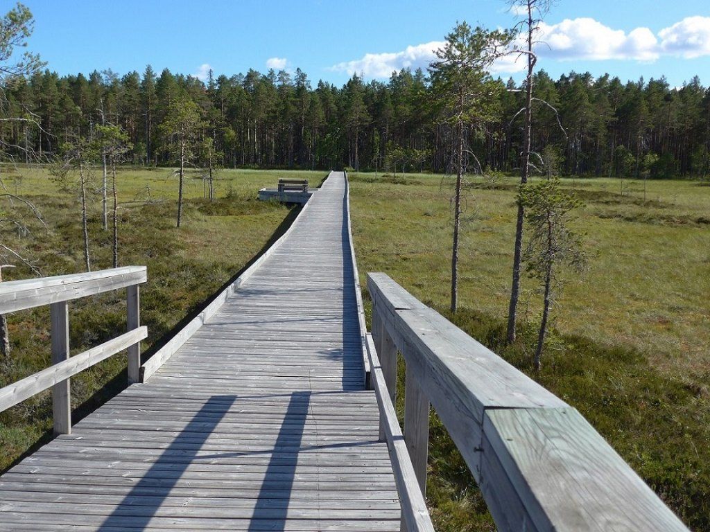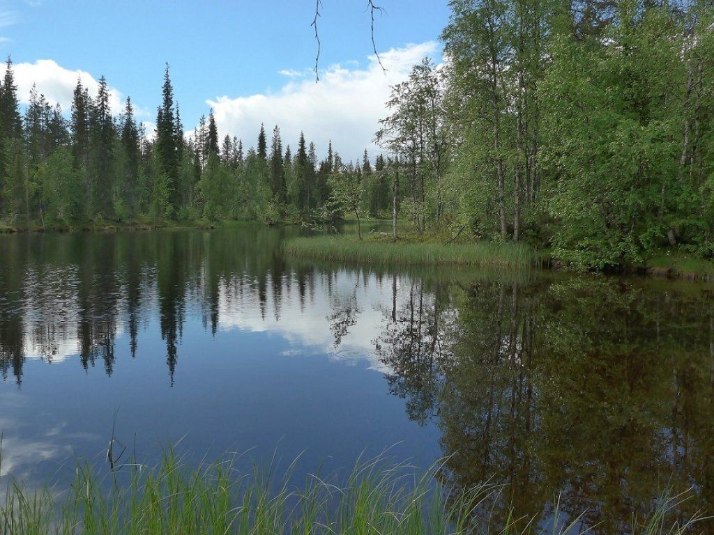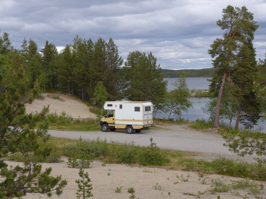 Landschaftsmässig sind wir nach der langen Reise durch Norwegen sehr verwöhnt. Plötzlich ist alles mehr oder weniger flach, viel Wald, viele Birken, viele Seen, Moore... wenig Menschen. Und es geht geradeaus. Wenn doch eine Kurve kommt, sieht's dahinter wieder gleich aus. Auf einer Anhöhe karge Bergtundra und etwas Weitsicht, dann wieder wie gehabt. Trotzdem hat auch diese Landschaft ihren Reiz und zudem finden wir meistens schöne Stellplätze zum Übernachten.