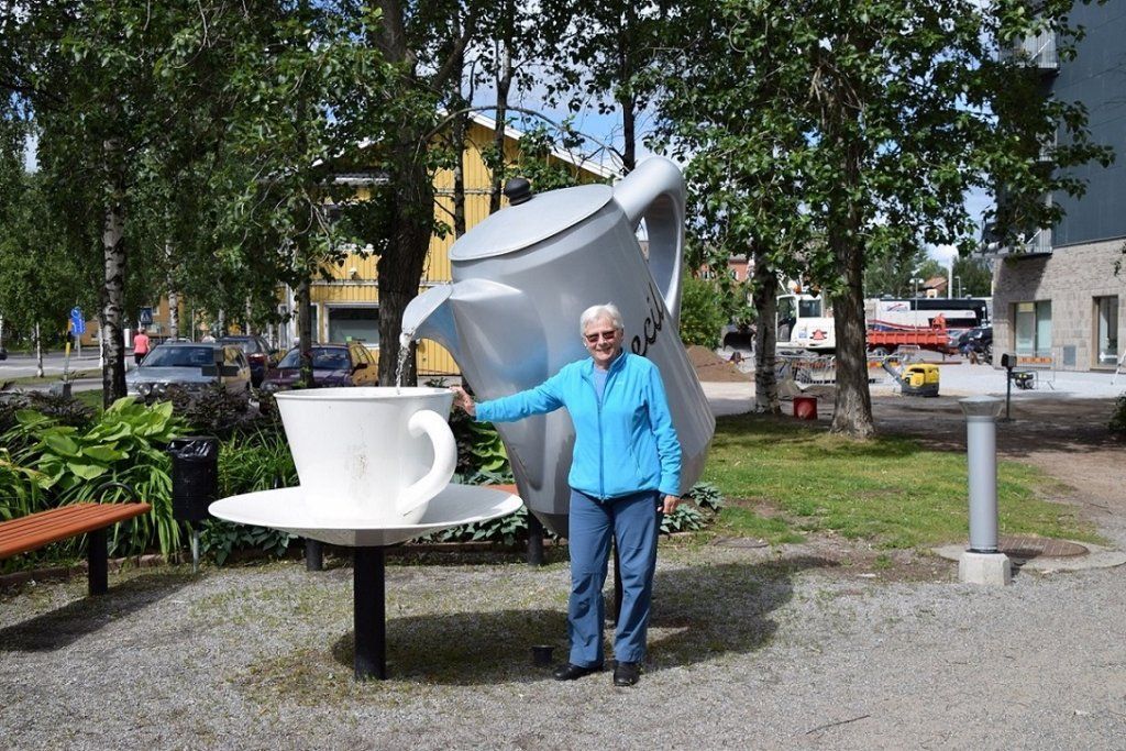 Ein täglicher Kaffeehalt am späteren Vormittag gehört bei uns zur Reisetradition. Am liebsten ist uns ein nettes Beizli in einem hüschen Ort mit Cappuccino im Angebot. Oder so. Manchmal müssen wir mit dem Vorlieb nehmen, was halt am Weg angeboten wird, manchmal aber werden wir überrascht. In Pitea zum Beispiel gefällt uns das Flair dieser Kleinstadt, die wir ohne Koffeinbedarf gar nicht besucht hätten.