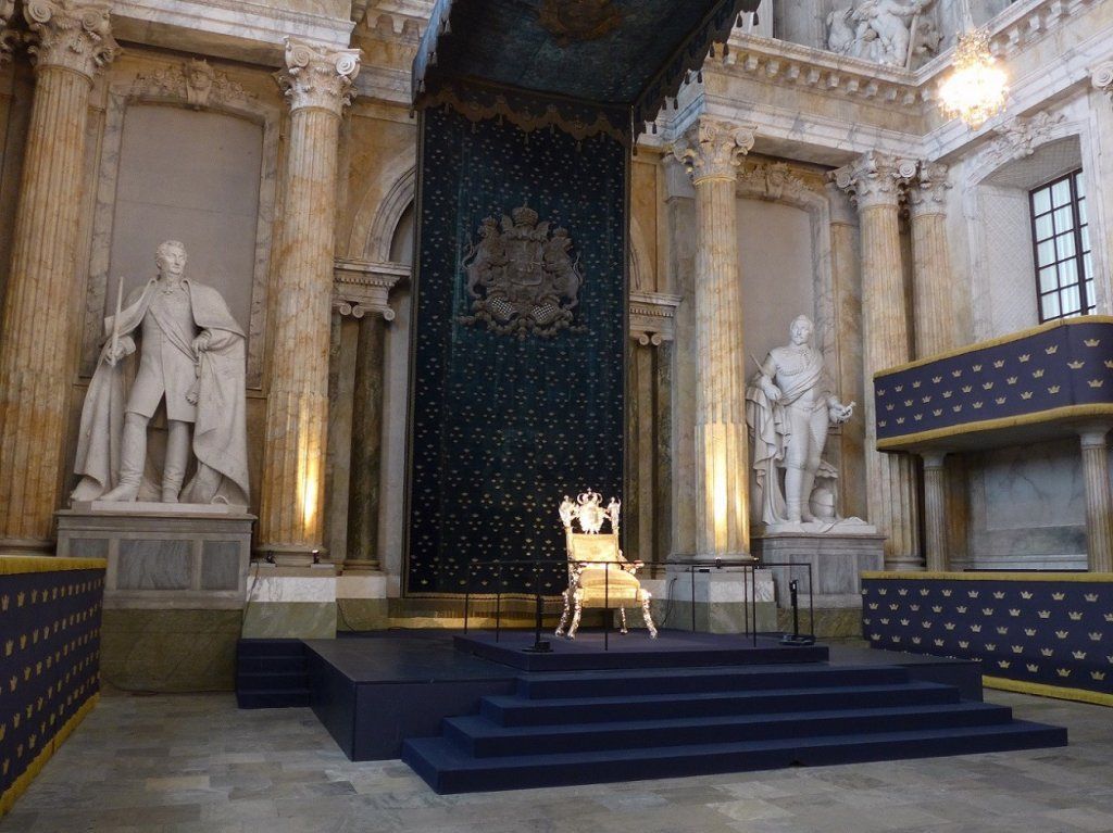Auf unseren ausgiebigen Städtewanderungen durchforsten wir unter anderem den charmanten alten Stadtkern Gamla Stan und die Fussgängerzone Drottninggatan. Wir besuchen das Nobelpreis-Museum und finden in den Akten sogar unseren Nachbarn, Richard Ernst, der 1991 den Nobelpreis für Chemie bekam. Natürlich darf auch das Königsschloss nicht fehlen. In unserem Reiseführer wird es zwar als ein schmuckloses Viereck bezeichnet, was bezüglich Aussenansicht leider stimmt. Die Innenräume hingegen sind alles andere als schmucklos, so wie es sich für ein Königsschloss aus dem 18. Jh. gehört. Zufällig sind wir gerade zur Wachablösung vor Ort, aber da sich ausser uns noch ganze Heerscharen von Touristen dafür interessieren, bekommen wir die Zeremonie nur im Hintergrund mit. Immerhin hört man die stramme Musik und das Bellen des Kommandanten. Auch das Rathaus ist ein Bau voller Superlative, ebenso das Parlamentsgebäude.